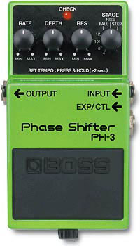 Phase Shifter Compact pedal with vintage BOSS phasing effects. New "Rise" and "Fall" effects create unidirectional phasing sounds. Includes classic 4-, 8-, 10-, and 12-stage phasers. Real-time control of rate via expression Pedal input. Tap tempo sync of phasing effects. "Rise" and "Fall" Effects In addition to standard up and down cycles, the new PH-3 Phase Shifter can produce entirely upward or downward moving sounds through its new Rise and Fall effects. There's also 4-, 8-, 10-, and 12-stage phasers, plus a Step effect. Total Control Syncing the PH-3's phasing effects can be achieved by simply tapping the pedal to the tempo desired. Or, for maximum control, connect an optional expression pedal to control both rate and filter in real time as you play.