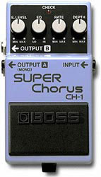 The CH-1 SUPER Chorus features sharp sounds with clear highs, and a stereo effect that varies depending on the spacing between the left and right speakers. The EQ function allows you to adjust the tonality from soft, mellow sounds to sharp, cutting sounds ideal for rhythm guitar.