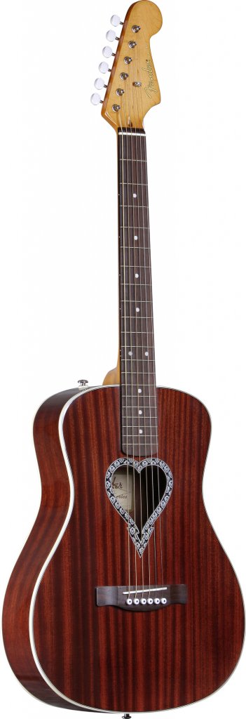 הגיטרה כולה עשוייה מהגוני ופתח תיבת התהודה מעוצב בצורת לב.